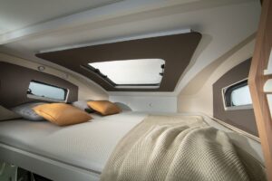 Un aspetto che ci fa capire a cosa stava puntando il gruppo Trigano quando concepiva questo camper, è il peso; si tratta, infatti, di un 6 posti che non supera i 30 quintali come peso a vuoto in marcia. Con una lunghezza di 6,95 m ed un passo di 370 cm, mantiene un’estetica brillante e non sembra assolutamente ingombrante, la guidabilità è fluida. Tocco di classe e modernità è la rifinitura esterna della mansarda leggermente arrotondata. Nella sua categoria è uno dei più capienti, possedendo una capacità di volume di 4000 litri. Due matrimoniali alle estremità ed uno al centro della dinette, tutti e tre i letti poggiano su un piano rigido, cosa da non sottovalutare.