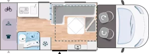 Questo profilato è fuori dal comune, in quanto, oltre all’accesso principale, dispone di un accesso di servizio per il garage e i vani portaoggetti. Il 240 è il primo a proporre all’interno una vetrata per separare la cucina dal salone a U modulabile (8 posti “aperitivo” di serie), il tutto in meno di 7m!