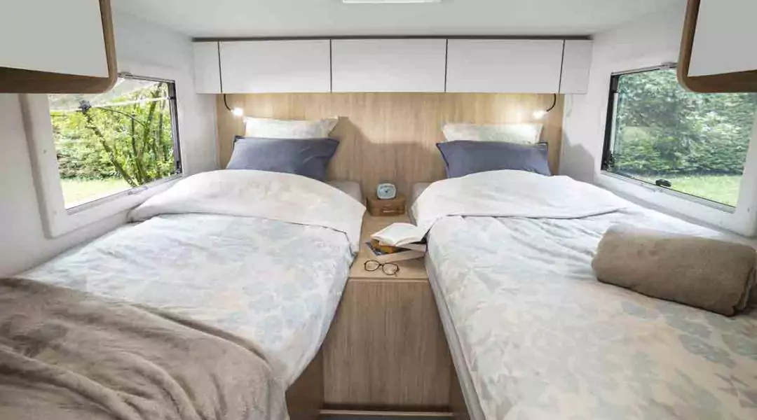 Unico sul mercato, partirete alla scoperta di grandi paesaggi in famiglia con il mansardato e i suoi 6 posti rivolti in avanti. A ciò si aggiungano i letti gemelli con prolunga king size, per il comfort più totale.