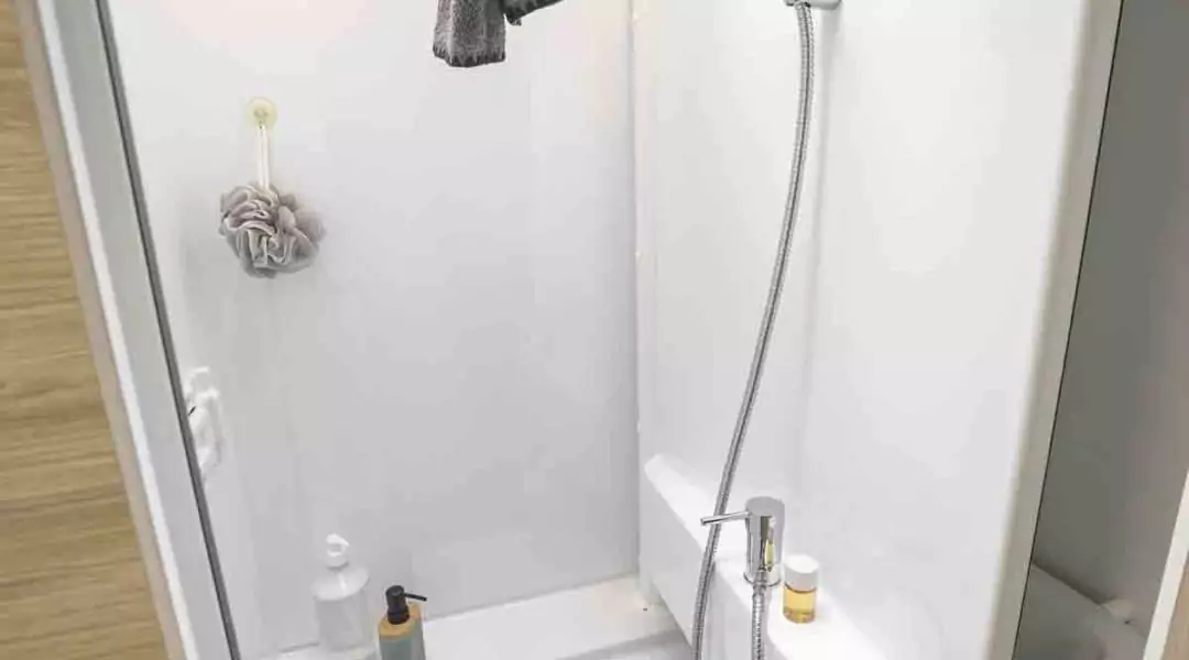 Accessori integrati: portasapone, portabicchiere, portasciugamani.