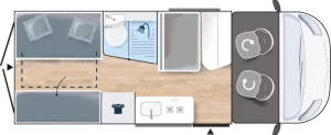 È la configurazione mitica amata da tutti gli appassionati: compatto (5,99 metri), il V114 va proprio dappertutto, in città come in campagna! Sala conviviale, bagno e cucina funzionali, il V114 vi sedurrà anche per il letto posteriore a due piazze che si alza per liberare spazio.