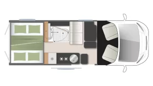 Inizia a viaggiare in buona compagnia. Una disposizione interna che si distingue per posti letto disponibili senza rinunciare alla comodità degli altri ambienti.
