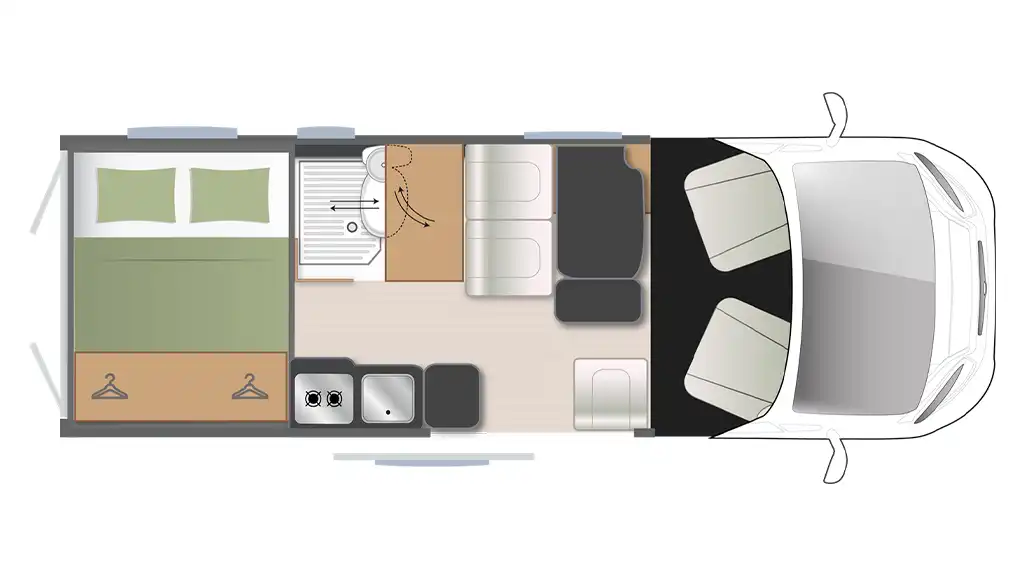 Horizon H 307 è il van compatto perfetto per le tue avventure. In soli 5,99 metri combina un design intelligente con una sorprendente ottimizzazione dello spazio e una grande capacità di stivaggio. Dotato di ben 5 posti omologati e una versatilità senza pari, offre tutto il comfort e la flessibilità di cui hai bisogno per viaggiare in compagnia, senza compromessi sull’abitabilità.