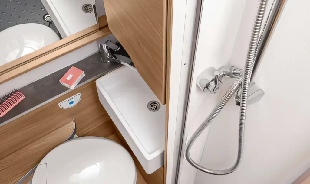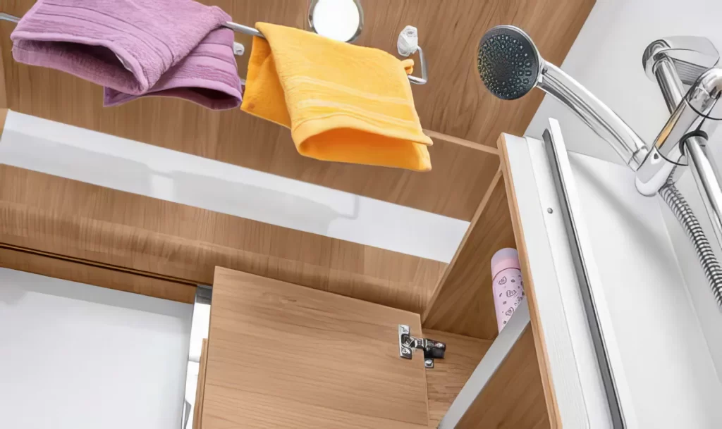 Bagno a volume variabile opzionale, che non solo offre più spazio grazie alla cabina doccia separata, ma consente al BOXLIFE 630 ME di avere anche letti longitudinali posteriori fino a 80 mm più lunghi.