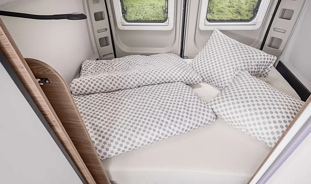 Un veicolo di nuova concezione per uno spazio di stivaggio ancora più grande Volume di carico di circa 2350 litri Letto basculante con regolazione manuale nella parte posteriore, versatile e resistente Riscaldamento a gasolio in serie per la massima autonomia di viaggio Letto basculante anteriore opzionale per fino a 7 posti letto Vano per il…