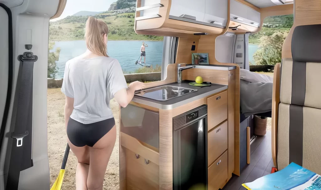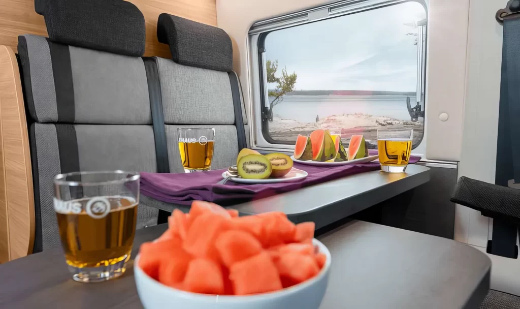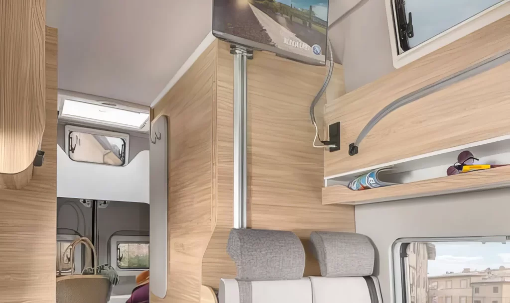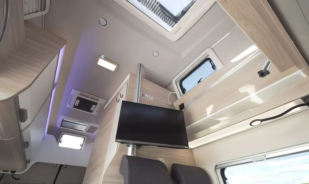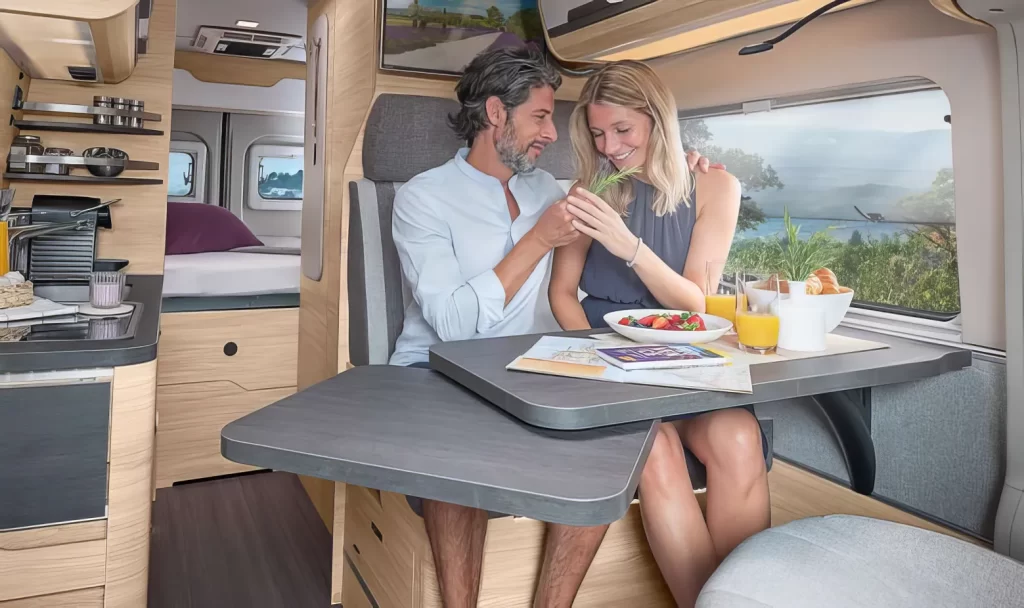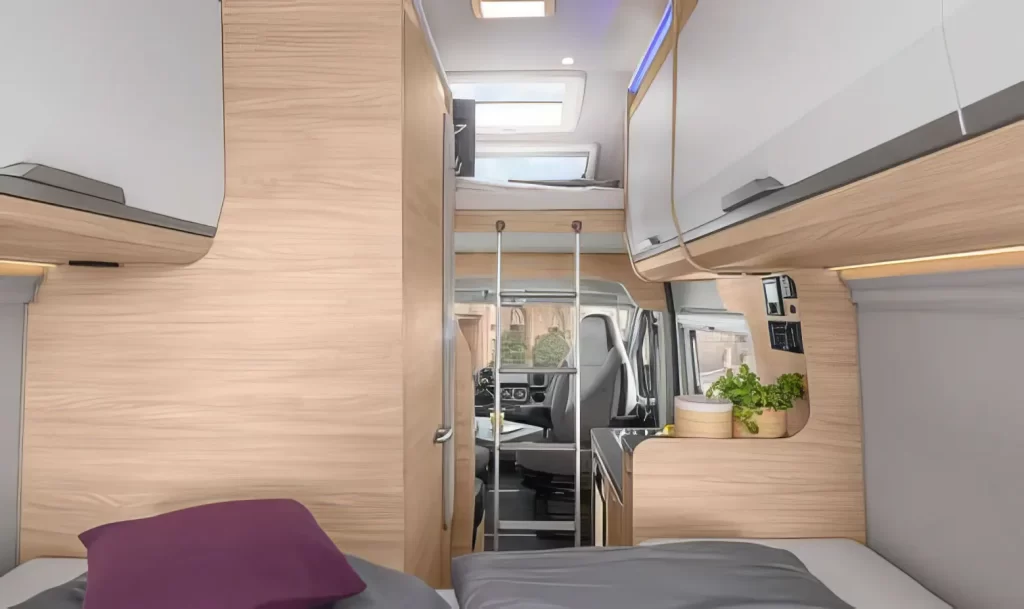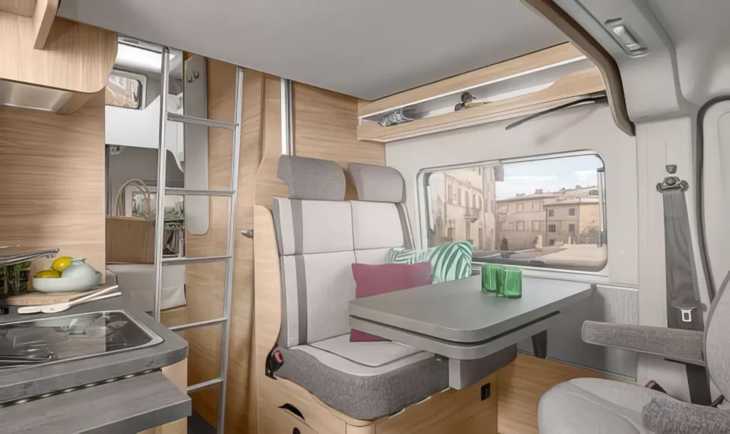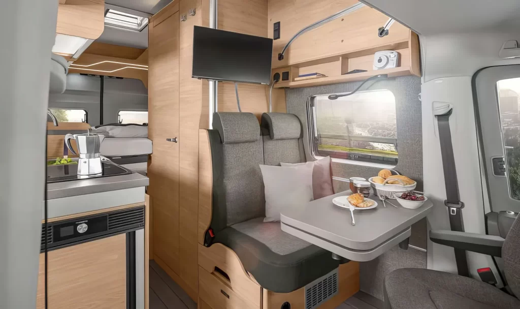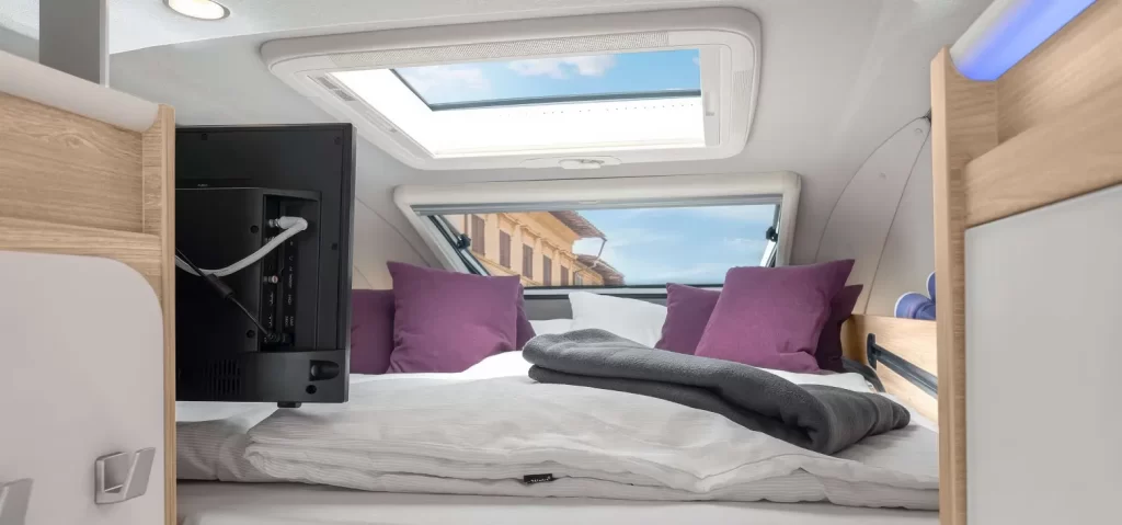 Tante funzionalità pratiche e interni del nostro camper van più spazioso convincono per il loro design moderno, i dettagli intelligenti e la lavorazione dei materiali di altissima qualità.La variante con tetto rialzato e struttura tetto aggiuntiva in vetroresina offre uno spazio gigantesco, con un’altezza interna fino a 238 cm.