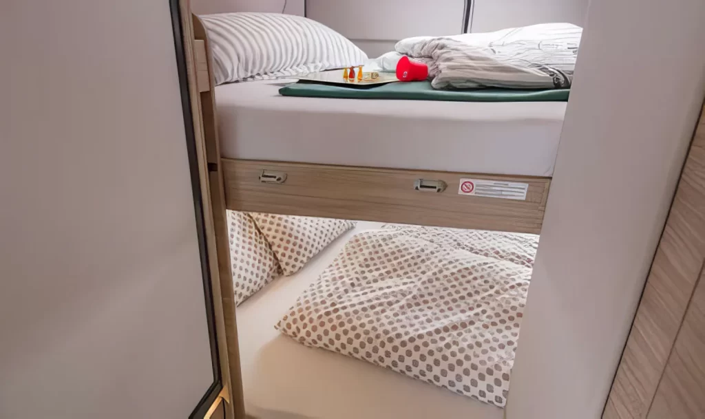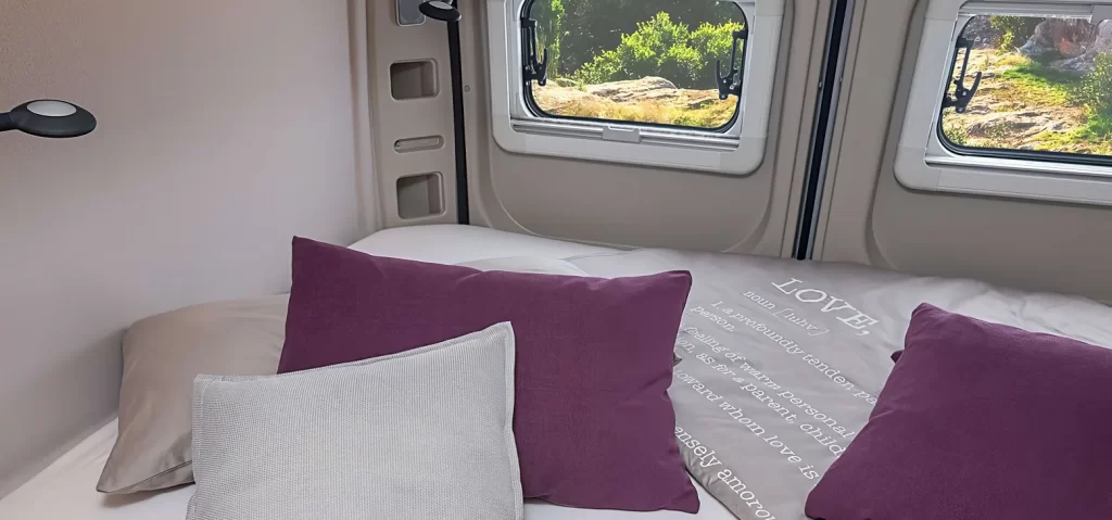 Ampio letto trasversale dove godersi non solo un sonno ristoratore, ma anche una vista unica aprendo i portelloni posteriori.