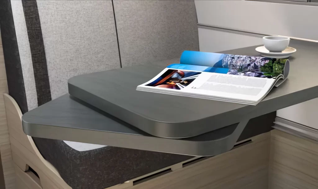 Nel BOXLIFE PRO 600 STREET troverai il tavolo sospeso della dinette che offre tanto spazio per distendere le gambe e sentirsi al settimo cielo, una versatile cassapanca per una maggiore possibilità di movimento e confort di viaggio