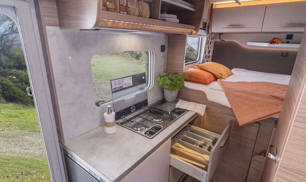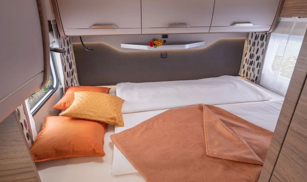 Nell’ampio letto trasversale posteriore, nel raffinato letto scorrevole anteriore o nella dinette multifunzione: nel TOURER VAN dormire bene è una certezza. La struttura innovativa garantisce i migliori presupposti, grazie a soluzioni eccezionali.