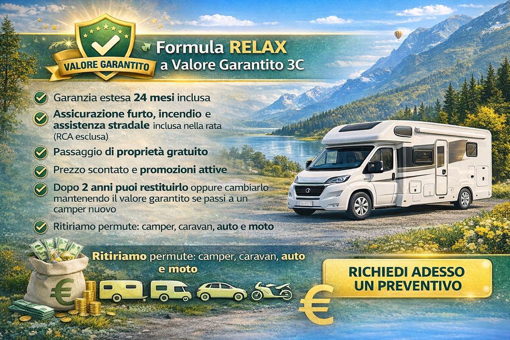 Questo camper usato è perfetto sia per coppie che per famiglie, combinando un layout intelligente con tutti i comfort di un veicolo ricreazionale moderno. Ogni camper viene controllato e verificato per garantirti una esperienza di guida sicura e serena, con possibilità di garanzie e formule di acquisto personalizzate.