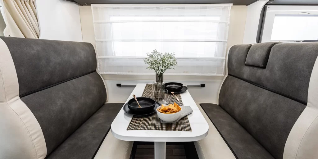 Glamys 322 mansardato sotto i 7 metri, 7 posti letto e doppia dinette. A misura di famiglia.