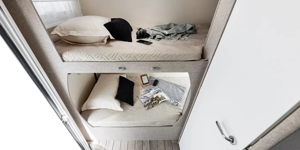 Mansardato sotto i 7 metri di lunghezza · 7 posti letto · Letti a castello posteriori