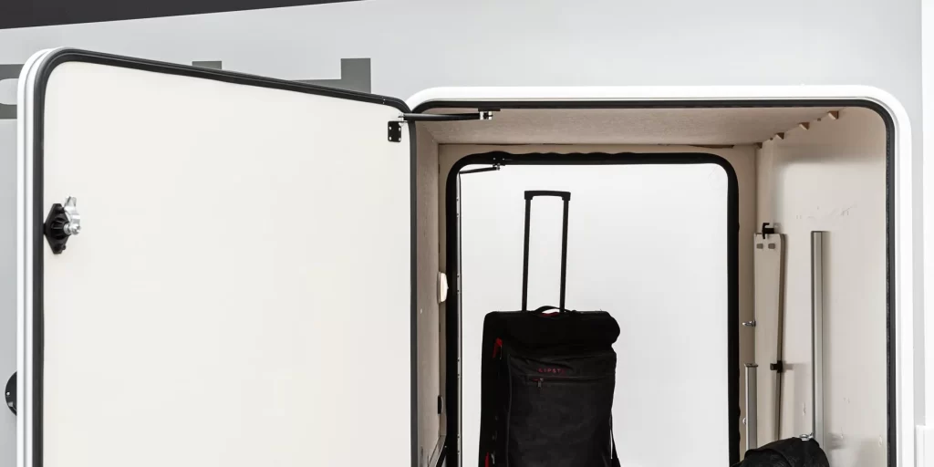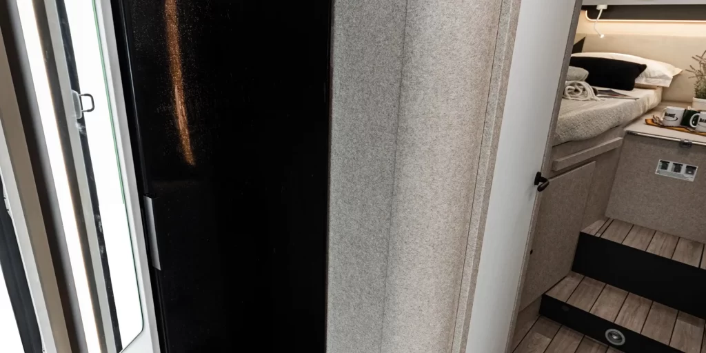 – Spessore del pavimento: 54 mm – Spessore del soffitto e delle pareti: 30 mm – Tetto esterno in vetroresina – Pareti interne/esterne in vetroresina – Area inferiore del telaio rivestito in vetroresina”