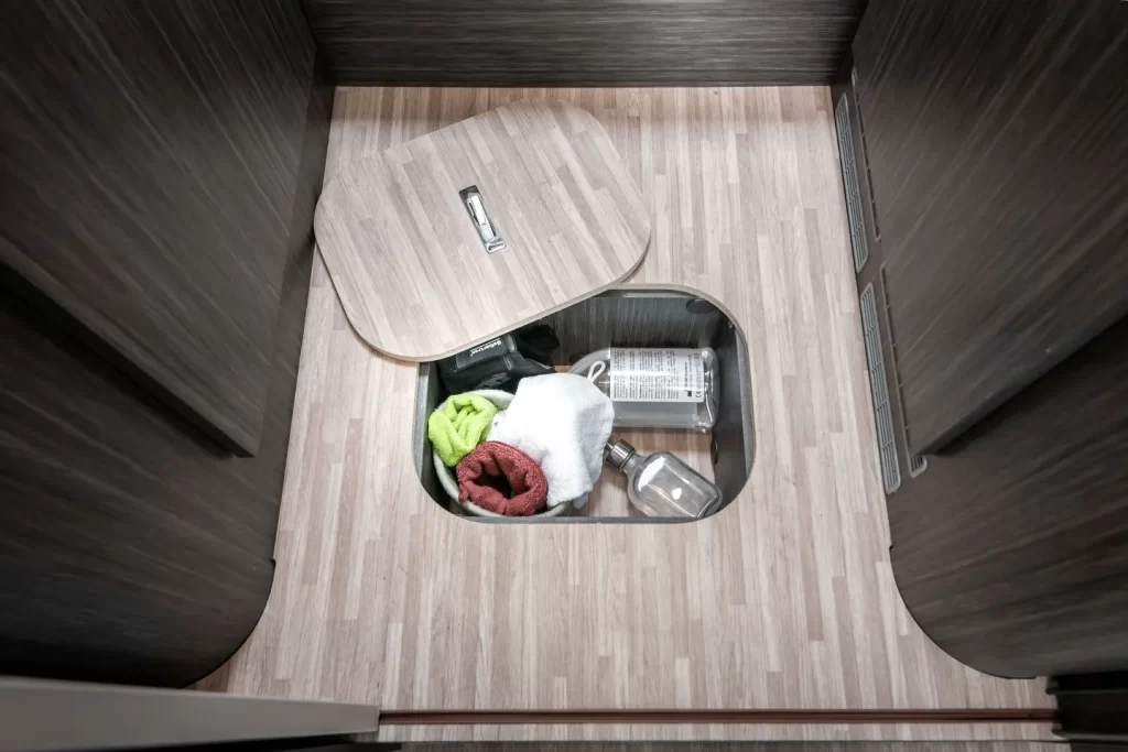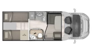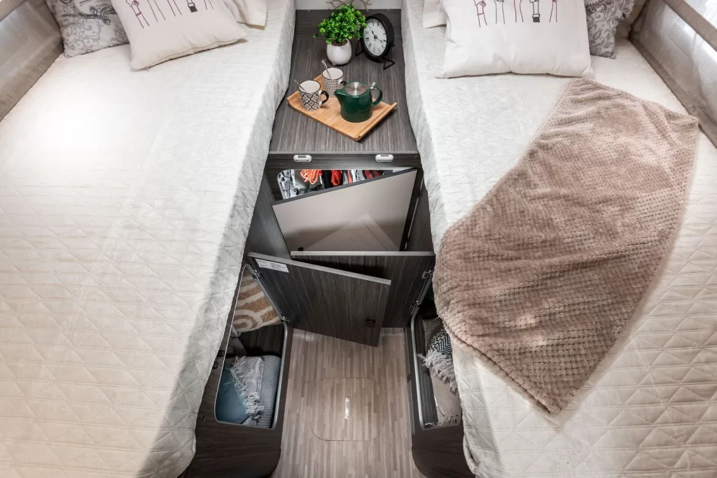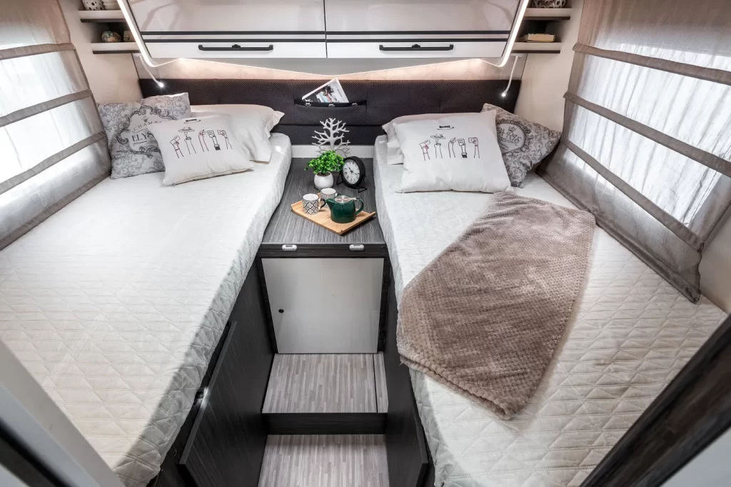 Profilato con letto basculante sotto i 7metri di lunghezza · Letti gemelli · Bagno a volume