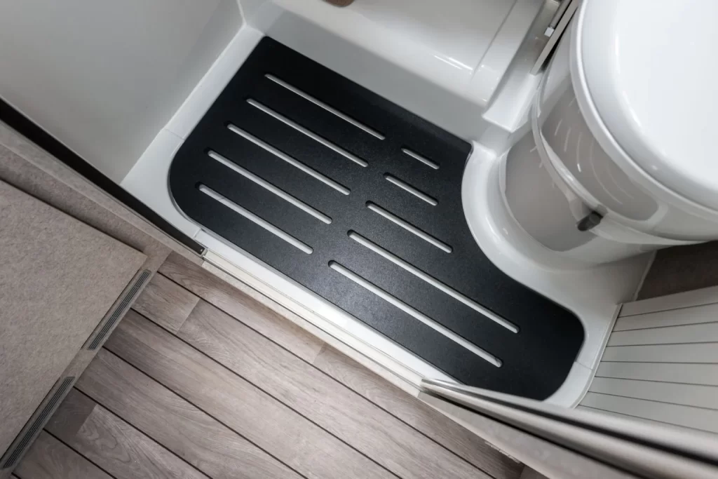 – Spessore del pavimento: 54 mm – Spessore del soffitto e delle pareti: 30 mm – Tetto esterno in vetroresina – Pareti interne/esterne in vetroresina – Area inferiore del telaio rivestito in vetroresina”