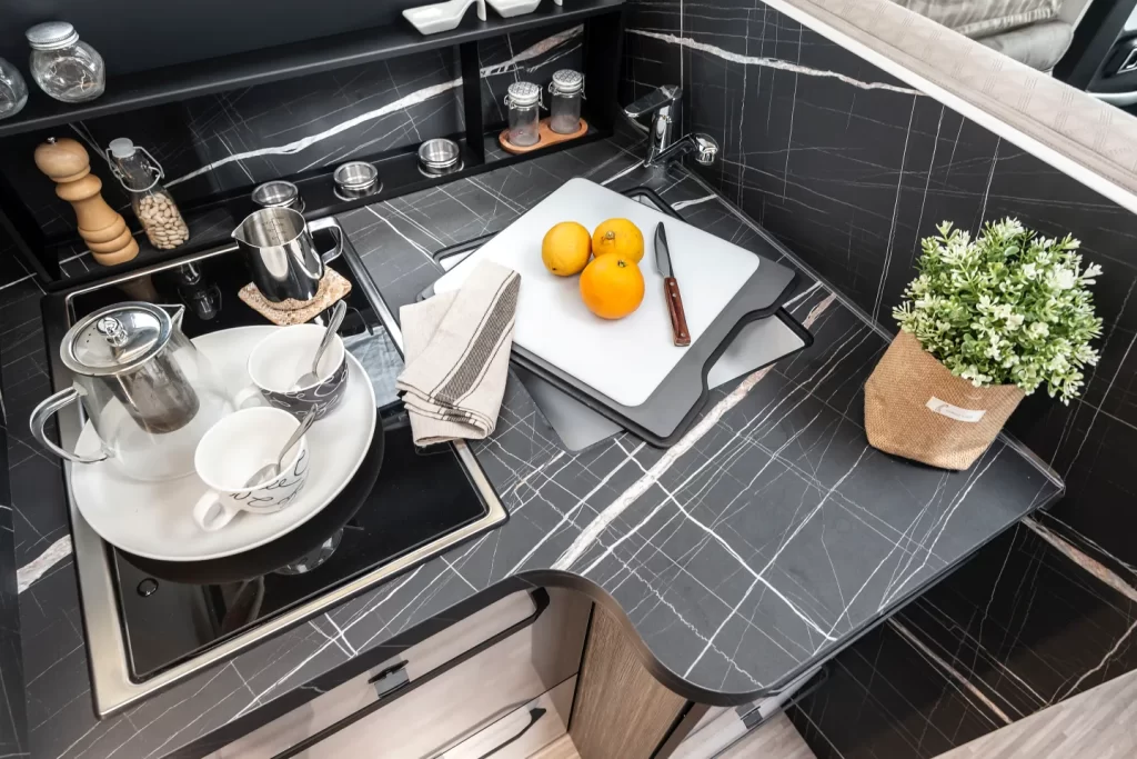 Ampio piano di appoggio/lavabo 3 fuochi lineari