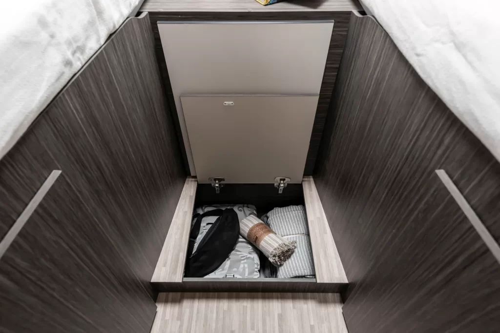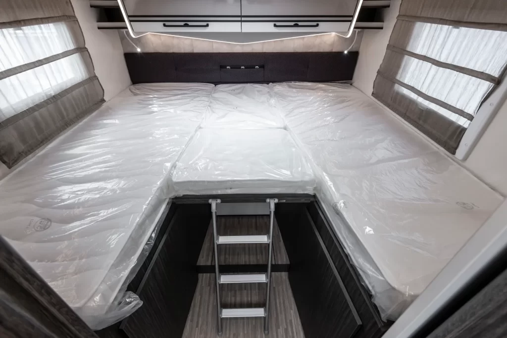 Integrale 7,45 metri di lunghezza · Letti gemelli trasformabili in maxi matrimoniale
