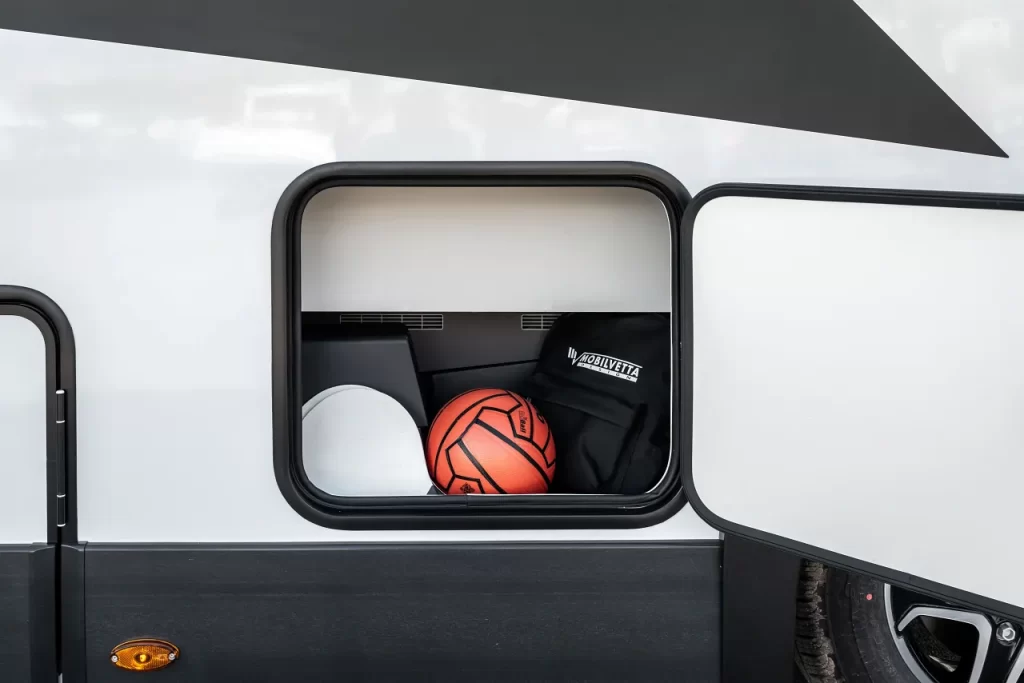 Ambiente aerato: 2 maxi finestre 60×90 cm + oblò a tetto 70×50 cm. Con zanzariera e oscurante.