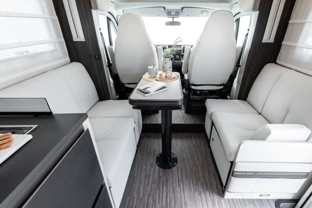 I sedili cabina, si ruotano per integrarsi in un salotto.