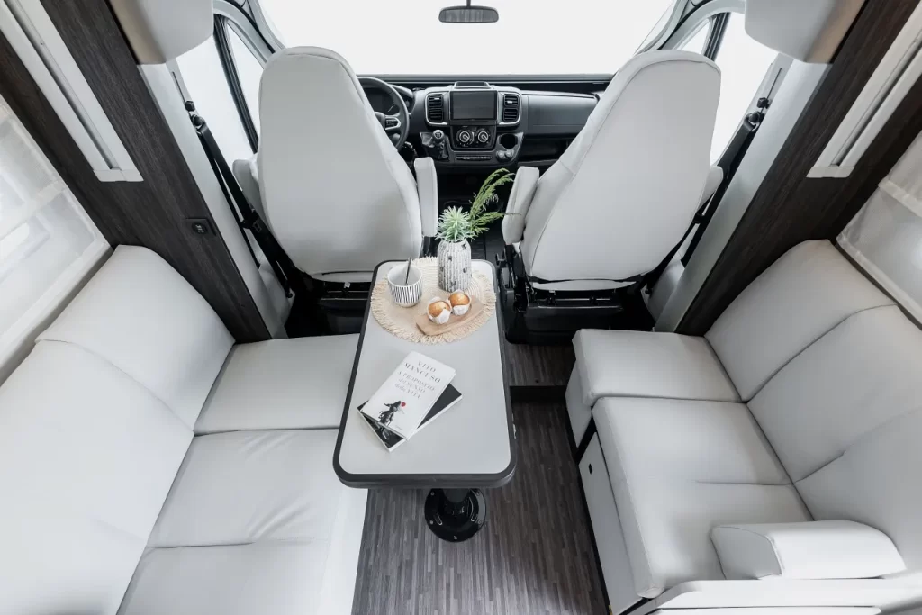 I sedili cabina, si ruotano per integrarsi in un salotto.