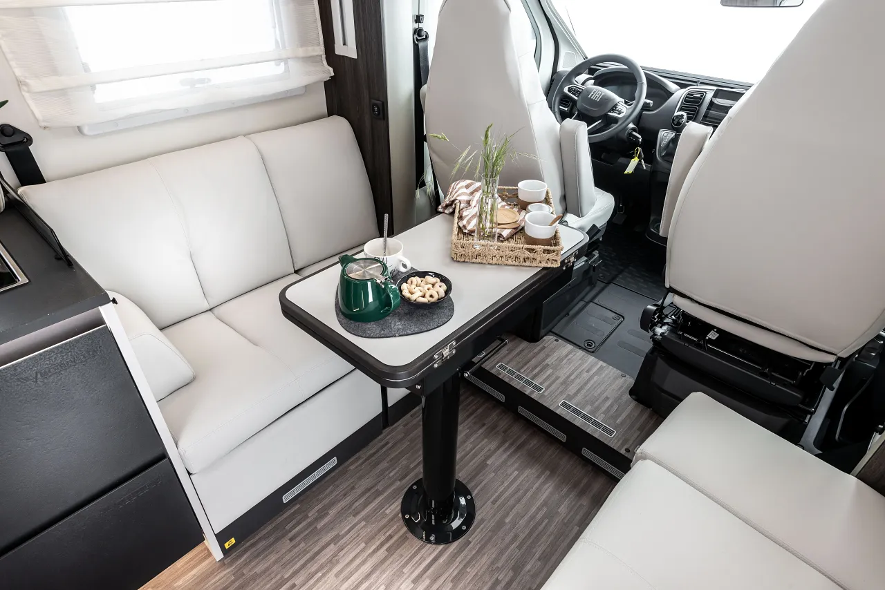 I sedili cabina, si ruotano per integrarsi in un salotto.