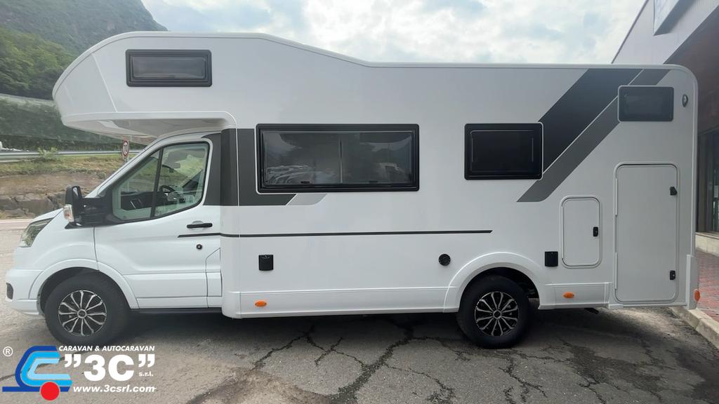 Basato sulla meccanica Ford Transit e dotato di 7 posti letto e 5 posti omologati, questo veicolo offre comfort, spazio e praticità per ogni tipo di itinerario.
