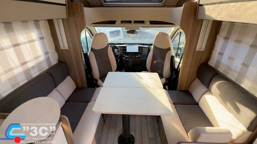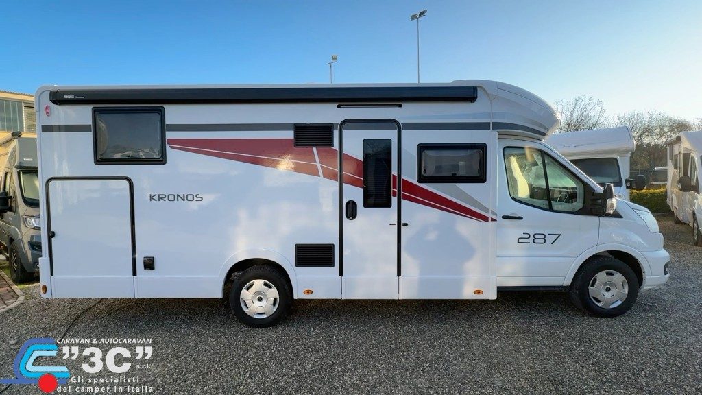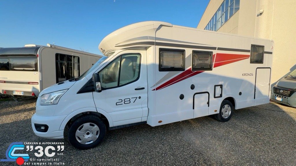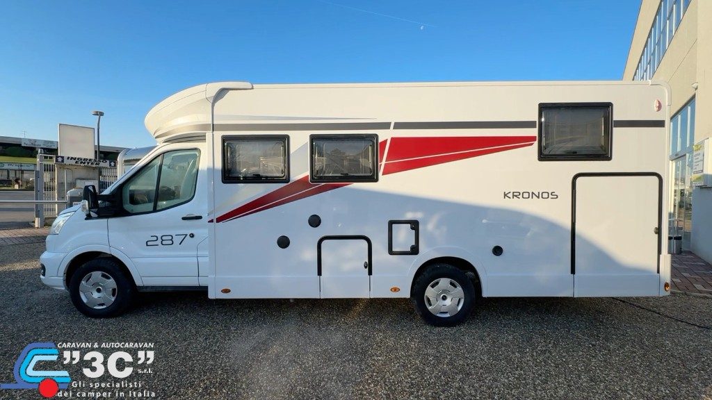 3600€ PACK KRONOS FORD: Fari "High Series" con luci di svolta statiche, Vano portaoggetti con serratura, Finiture cruscotto "Trend", Paraurti e modanature laterali verniciati in tinta con la carrozzeria, Porta Cellula con 2 punti di chiusura, con finestra e chiusura centralizzata, Pannello di controllo CP-Plus, Coperchio lavello/tagliere, Pannello solare da 200W con regolatore MPPT, Tetto apribile, Oscuranti cabina plissettati, Coprisedili cabina.