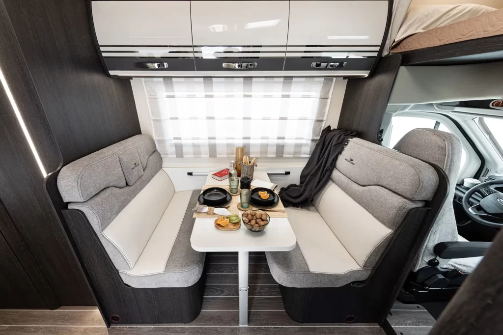Trasformazione della dinette in un letto matrimoniale longitudinale.