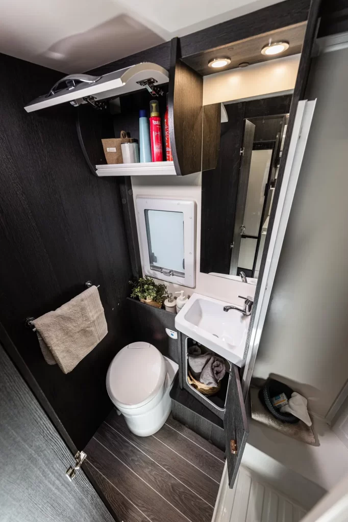 – Spessore del pavimento: 54 mm – Spessore del soffitto e delle pareti: 30 mm – Tetto esterno in vetroresina – Pareti interne/esterne in vetroresina – Area inferiore del telaio rivestito in vetroresina”
