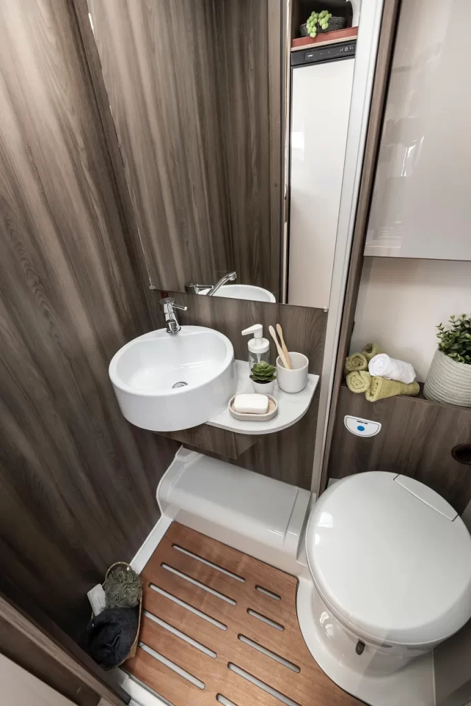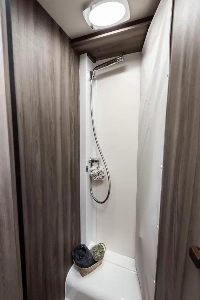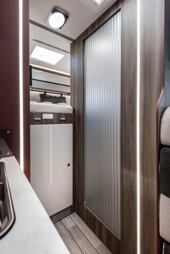 Il compatto con letto matrimoniale e bagno a volume variabile