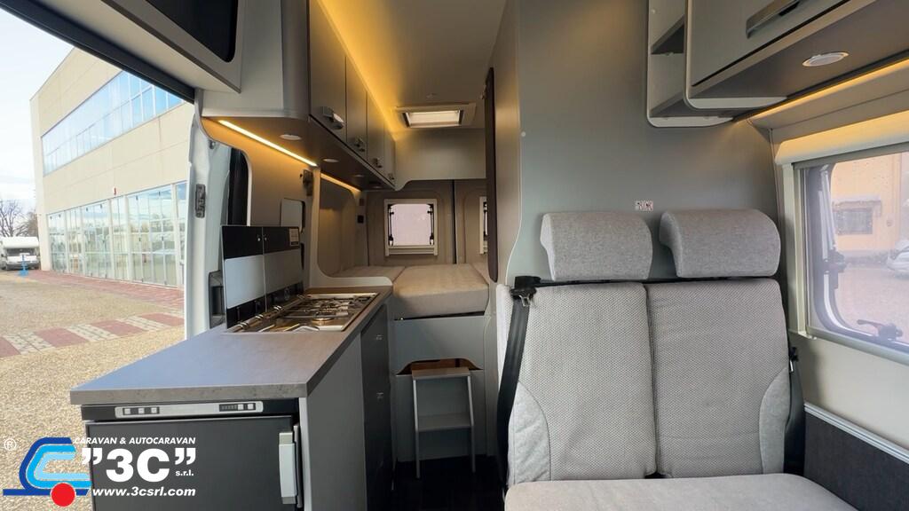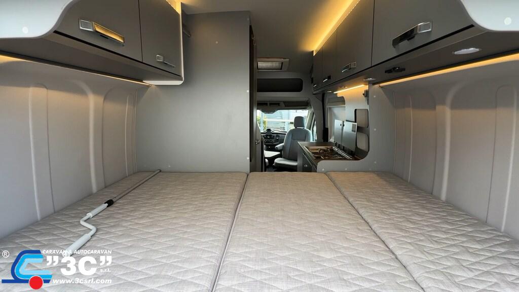 Basato sulla meccanica Ford Transit e dotato di 2 posti letto e 4 posti omologati, questo veicolo offre comfort, spazio e praticità per ogni tipo di itinerario.